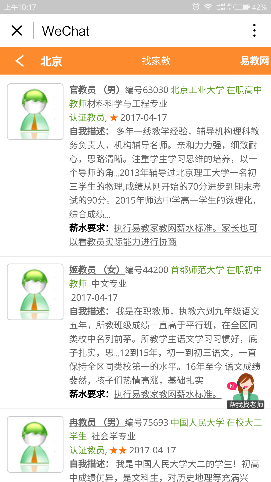易教网是全国连锁家教网站。提供专业的上门一对一家教服务。 请家教:数十万名校师资,在线查询,自主挑选。让你足不出户就找到满意老师! 做家教:数万家长在线,海量家教订单,总有一个适合你!