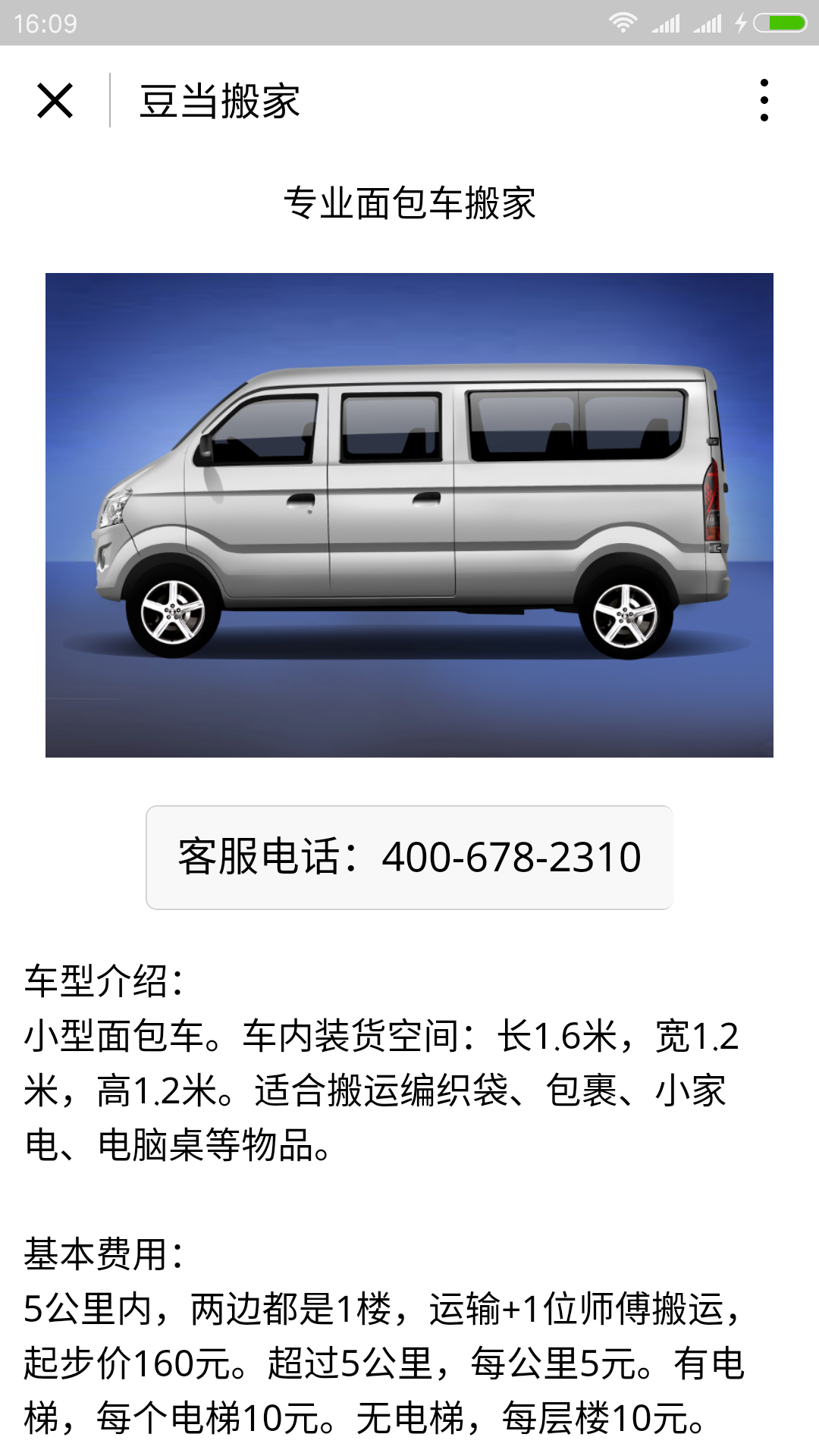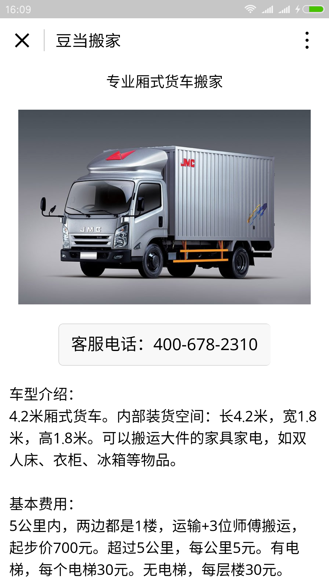 豆当搬家是专业的搬家公司,在这里可以查询提供搬家的车型和报价