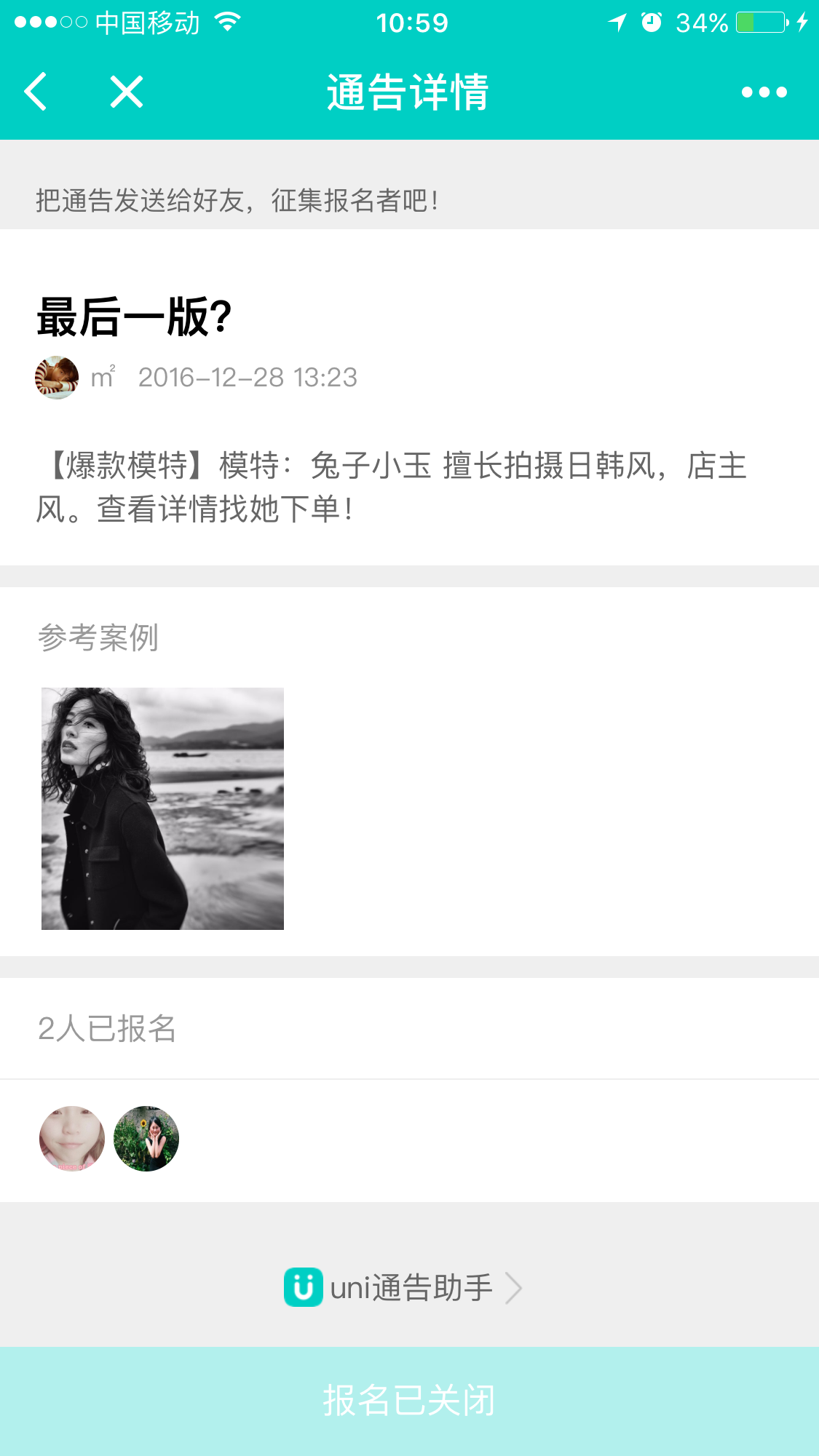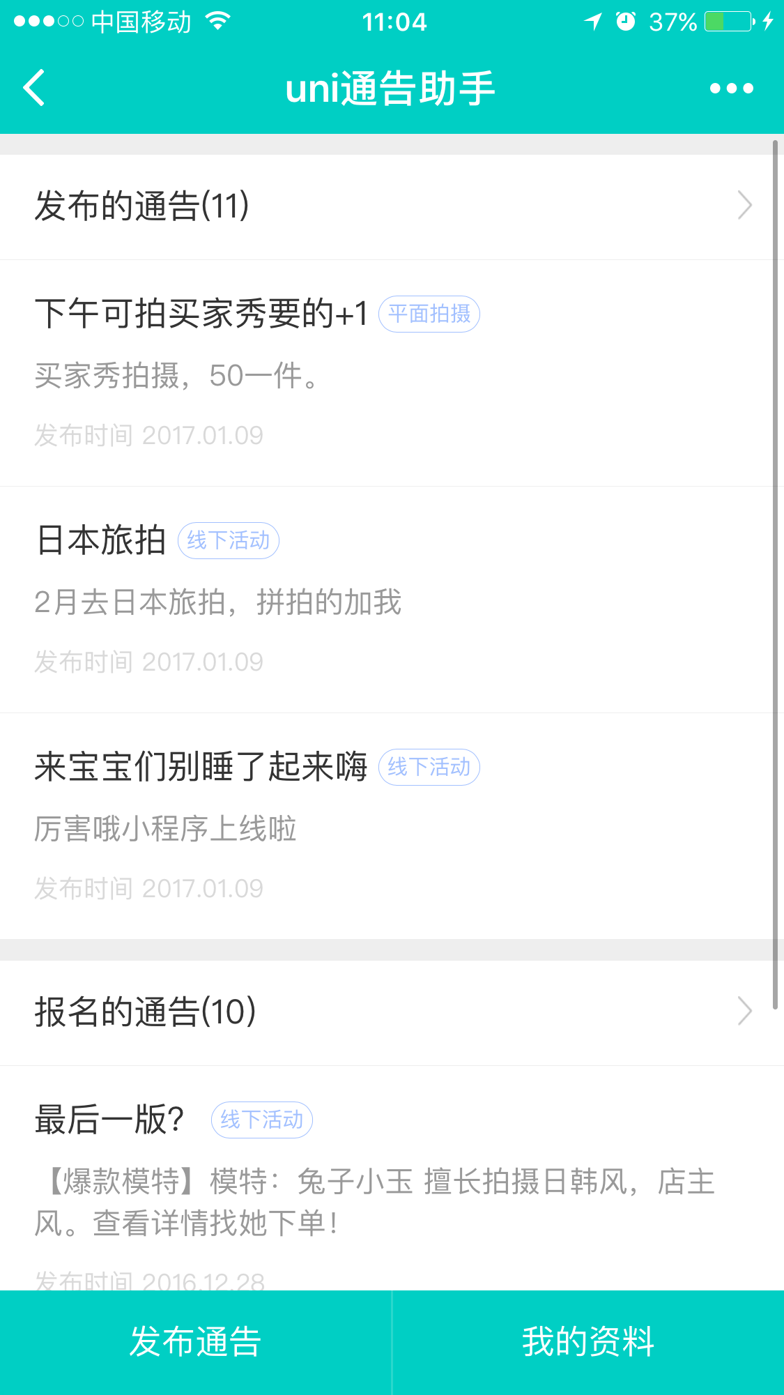 来自蘑菇街旗下uni的小程序。每日汇聚大量工作通告,帮助红人快速、便捷、准确地接到工作通告。