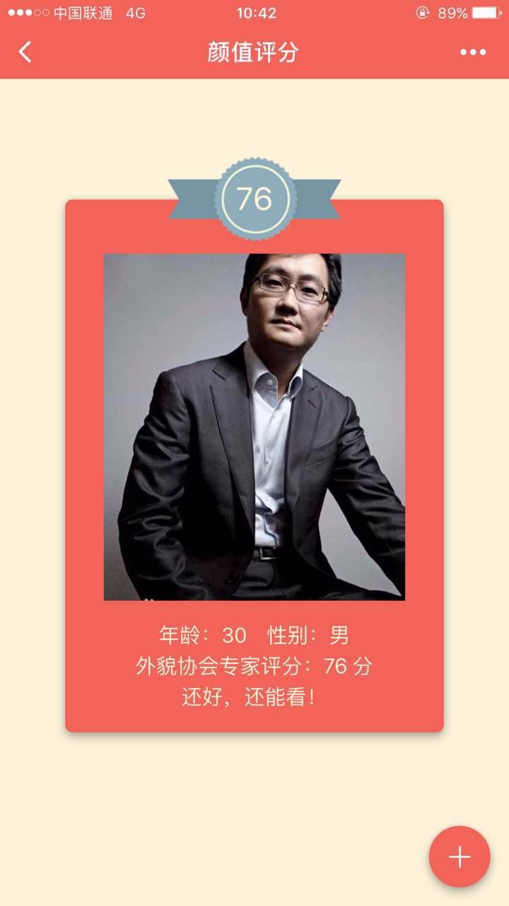 颜值评分是一款通过上传照片到Face++人脸识别服务得到人脸属性后,调用黄金比计算颜值的小应用。