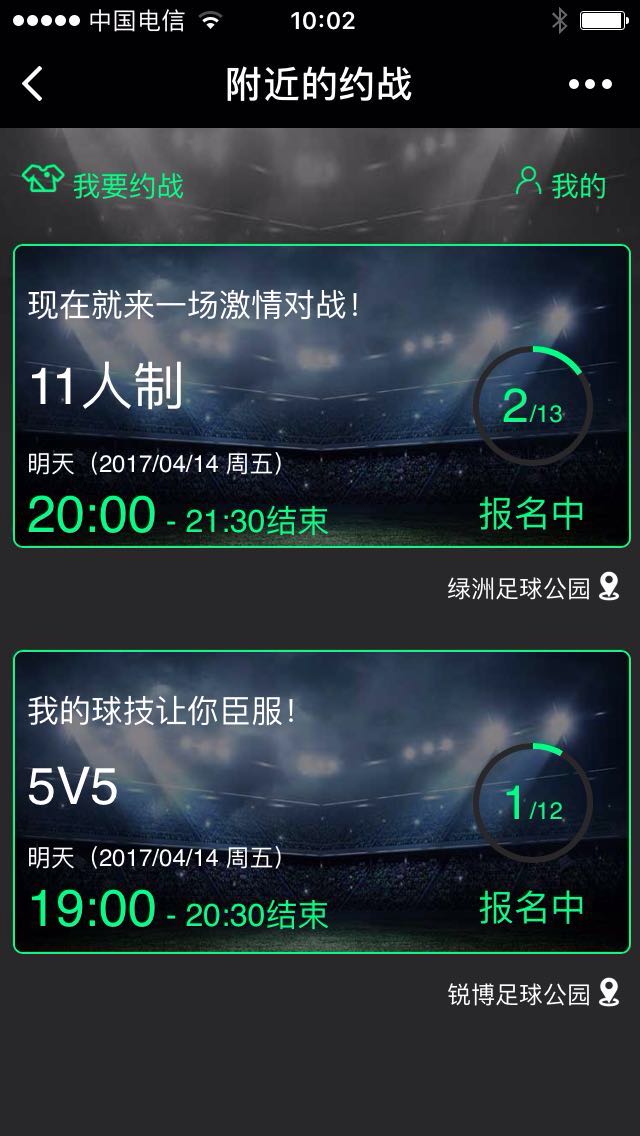 “好球约战”聚集了您周围发布的足球比赛约战信息,您可以方便快速的通过“好球约战”发起球赛并邀请您的群好友或附近的人一起参与比赛!