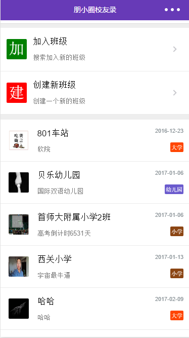 微信里的校友录。只能查看已经加入班级的校友圈。