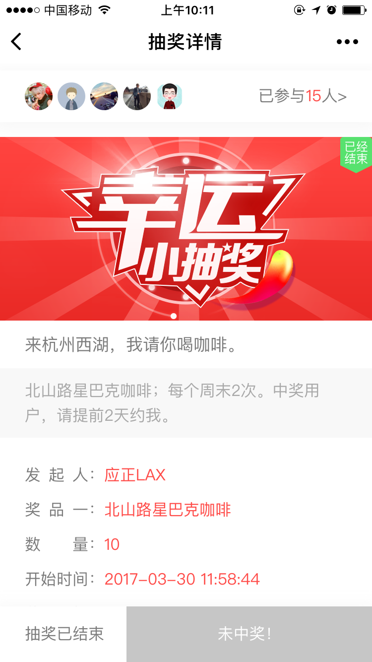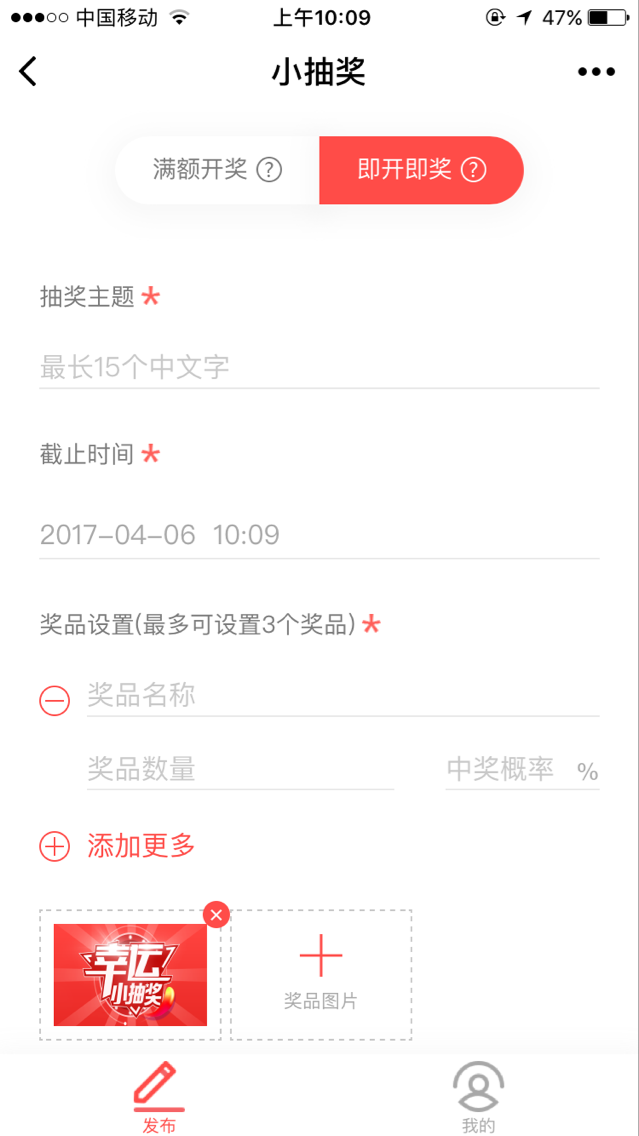 小抽奖小程序是提供给用户用于发布抽奖以及参与抽奖的一个抽奖工具。用户通过该工具发布抽奖信息,他人经由好友分享进行参与。